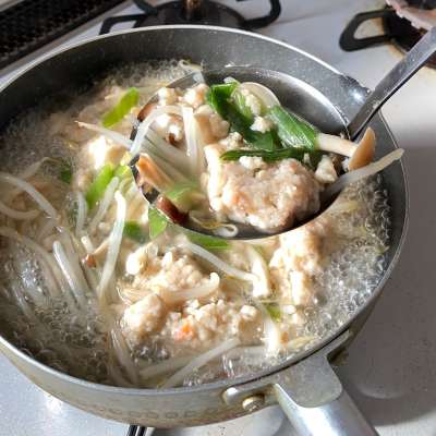 今回のスープうますぎ。もやし一袋一気に食べられそうな勢い。もやし20円久々見た。すり身はよく値引きされてる、いい出汁でるよ。味付けはいつも塩のみ。